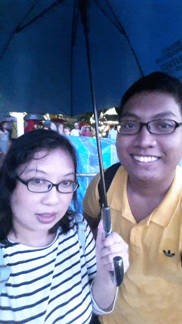 So okay, after being really sure there won't be snow, we started walking around past game and food baths to a mini concert where there were people singing the Christmas carols. Then we walked around again with our one single umbrella and we saw some booths had queues while some did not. There was one guy supposed to man the booth in the rain without shelter but poor thing, he was in the rain in his raincoat but no one was interested in playing.